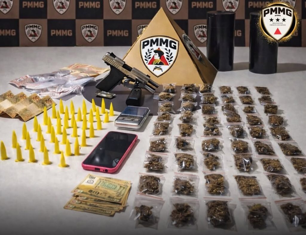 De acordo com a PM, durante patrulhamento preventivo, a guarnição visualizou um indivíduo já conhecido no meio policial em atitude suspeita. Foi realizada a abordagem, sendo localizada inicialmente com ele uma bucha de maconha. Em continuidade às diligências, os militares localizaram, no interior da residência do suspeito, uma quantidade expressiva de materiais relacionados ao tráfico de drogas, além de uma arma de fogo e munições.