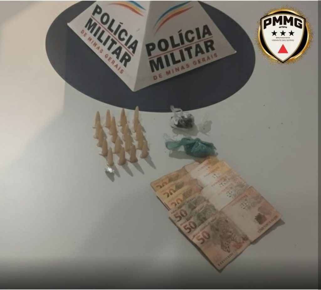 Segundo a corporação, durante patrulhamento na região de Córrego Ferreira, os militares da 215ª companhia de policiamento de Brumadinho receberam uma denúncia anônima sobre ponto de tráfico de drogas na localidade.